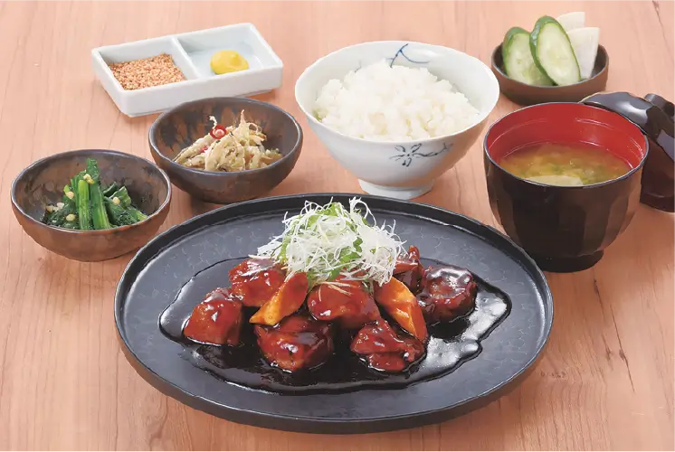 - 黒酢の酢豚定食